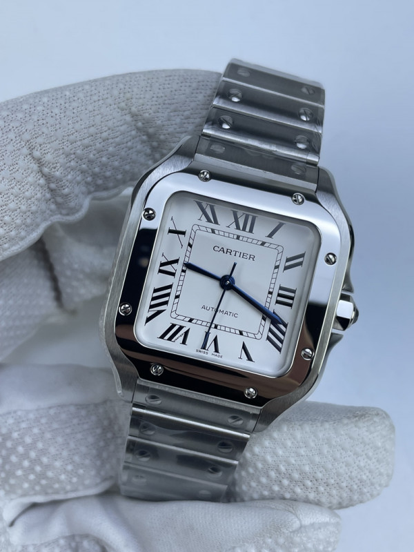 (준비완료/특급배송)NO.3143/BV공장 까르띠에 산토스 2018 미디움 스틸 화이트다이얼 스마트링크 브슬 35MM